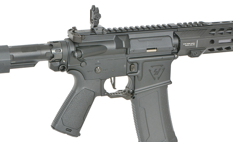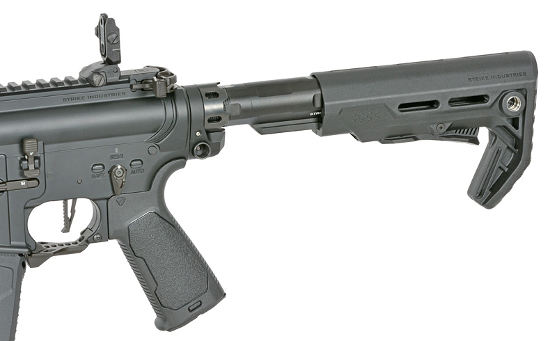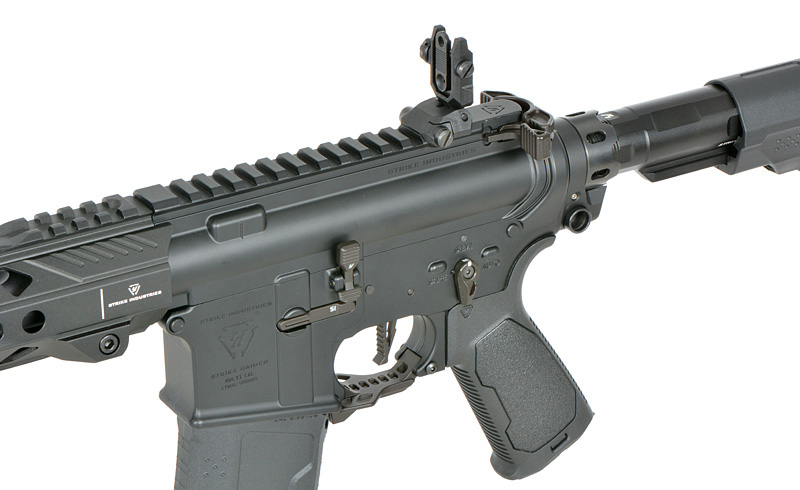 Upgraded components include the Strike Industries buffer tube nut, back plate, buffer tube, and an ambidextrous Strike fire selector for quick fire mode changes. The redesigned Fang trigger guard improves handling during dynamic gameplay.