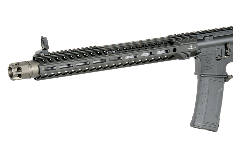 The Strike Industries 15.5" Rifle Black Version is a modern airsoft replica made from durable aluminum alloy, combining functionality with refined design.It features a 15.5-inch M-LOK Strike Rail handguard with QD mounting points for accessories and a Picatinny top rail for mounting optics. The adjustable Mod1 stock with ambidextrous QD system for a tactical sling ensures comfort and adaptability.