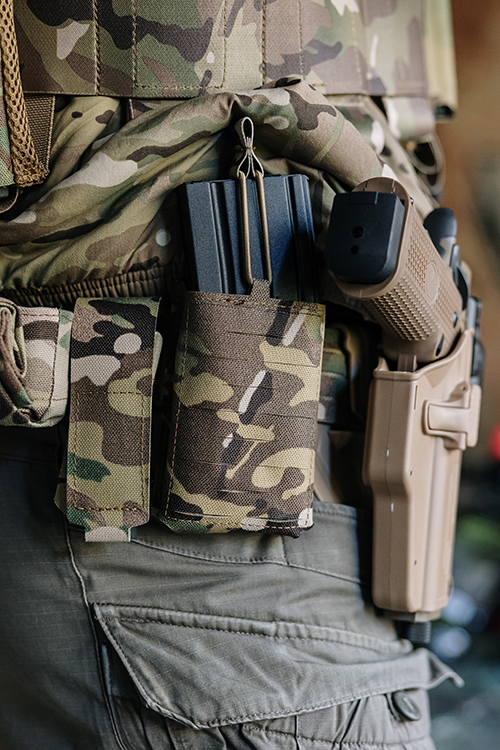 8Fields Krótka, pojedyncza ładownica Laser-Cut na magazynek typu AR15/AK to kompaktowy i funkcjonalny element oporządzenia dla graczy ASG, którzy oczekują wysokiej trwałości, niskiej wagi oraz nowoczesnej konstrukcji. Ta wersja ma wysokość 120 mm (zamiast 140 mm w modelu długim), co zapewnia bardziej niskoprofilową budowę i szybszy dostęp do magazynka. Wykonana z odpornego na przetarcia nylonu 1000D świetnie sprawdza się w wymagających warunkach polowych. Precyzyjne wycięcia Laser-Cut oraz zastosowanie otworu drenażowego przyspieszają odprowadzanie wody i poprawiają funkcjonalność.